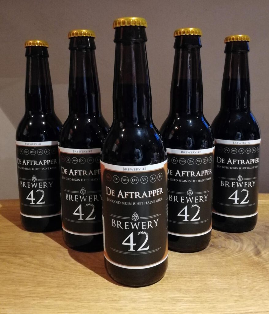 Hoewel Kevin was overtuigd van de volle smaken en de lichte body, stonden er tegenover hem vier aarzelende vennoten. Geen van hen was bekend met deze soort en waren onzeker of dit nou het beste bier was om mee te beginnen. Desalniettemin begon Brewery42 op 1 maart 2020 aan de eerste brouwdag. De eerste testbrouw was direct al een hit (in zoverre een stel amateur brouwers een hit konden hebben), maar er was nog een lange weg te gaan. De volgende weekenden zwoegen en testen hebben zich gemanifesteerd in de Aftrapper.